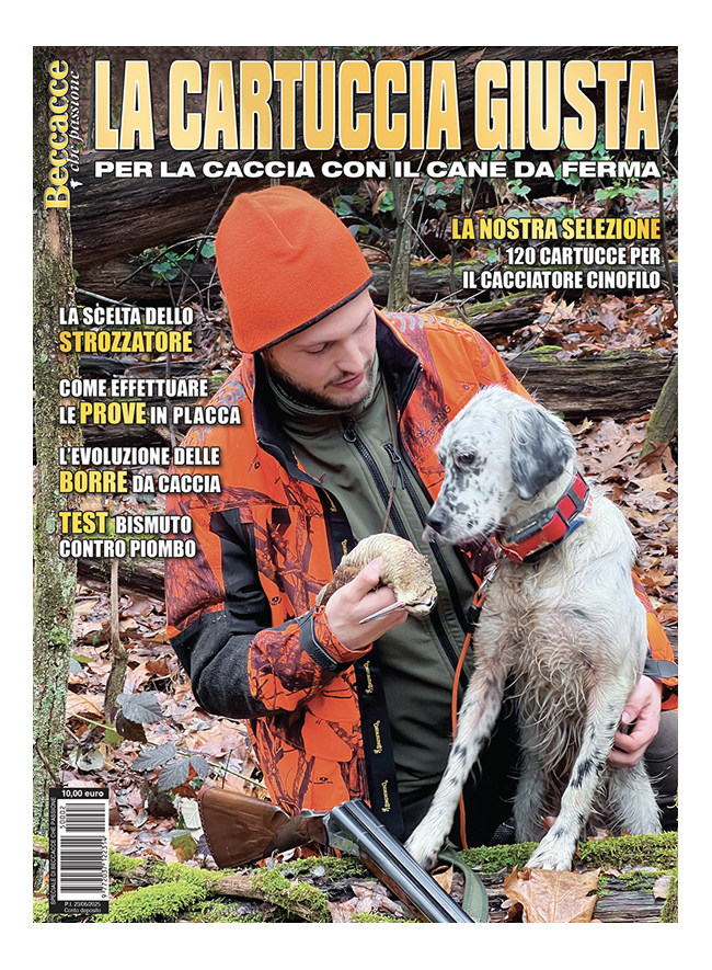 Saper scegliere la cartuccia giusta, dunque, è di fondamentale importanza per massimizzare le proprie chance di successo sul terreno di caccia. Abbiamo dedicato questo speciale di 84 pagine proprio al cacciatore cinofilo, per aiutarlo non soltanto nella scelta della munizione più adeguata al selvatico che intende insidiare e alle proprie abitudini di tiro, ma anche nella scelta della strozzatura e della canna più adeguata. Abbiamo analizzato anche le diverse soluzioni offerte dal mercato in fatto di borraggi, dal tradizionale feltro, alle bior, fino ai diversi tipi di dispersore. Non manca anche un focus sulle cartucce green, con un’analisi delle differenti alternative al piombo e una prova comparativa per confrontare il rendimento di una tradizionale cartuccia dispersante in piombo con quello di una dispersante caricata con pallini in bismuto.